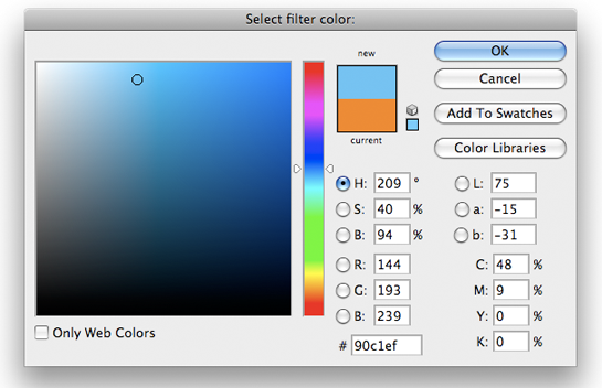 You can also customize a Photo Filter by selecting Color and clicking on the color swatch to open the Color Picker panel.