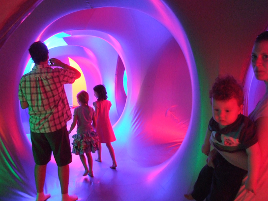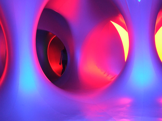 A luminarium is a sculpture people enter to be moved to a sense of wonder at the beauty of light and color.