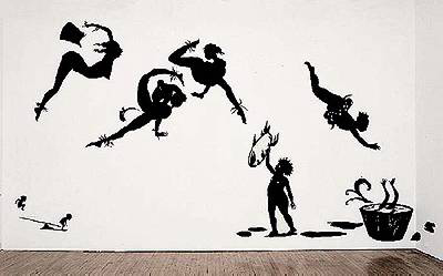 Kara Walker. Danse de la Nubienne Nouveaux. 1998, paper silhouette installation, 120 x 240in. overall. The Broad Art Foundation, Santa Monica.