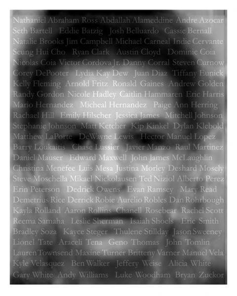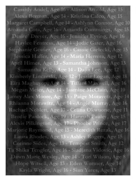 This portrait is comprised of images of adolescents who were murdered by their peers.