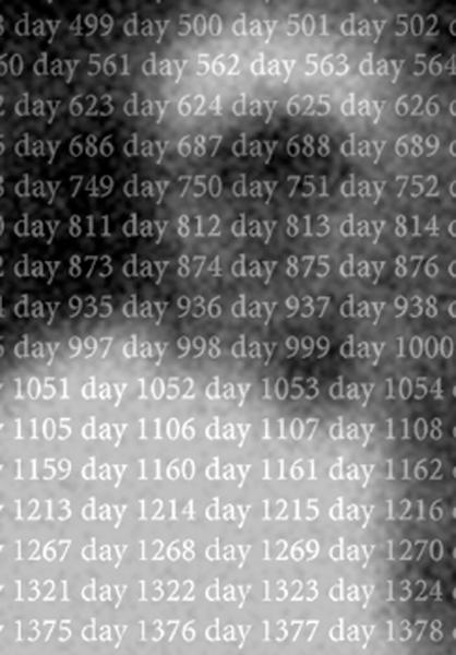 This print has been displayed as a whole image or in sections, wrapping around gallery walls. 3,220 days are counted out sequentially.