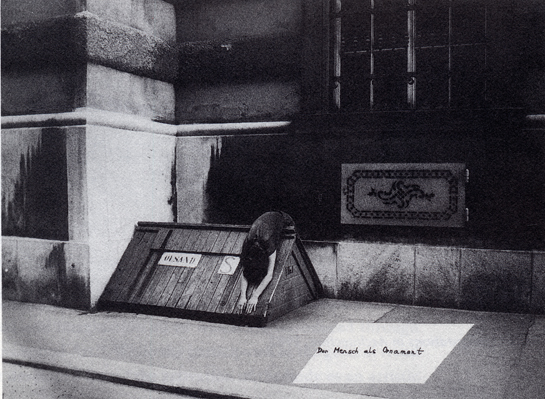 VALIE EXPORT, Body Configuration, Starre Identität, Rigid Identity, 1972. Photograph, b/w, 41 x 61cm. Photo © Hermann Hendrich. Collection Museum Moderner Kunst Stiftung Ludwig, Vienna.