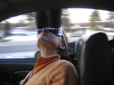 Windows of an automobile work as viewfinders that structure and limit the visual stimuli we see from the confined space of the car. Because car bodies are fairly high, our orientation in the vehicle places us at approximately the same height as when we stand. That familiar vantage point helps make sense of our view when driving at high speeds. In the Modified Auto Viewer, artist Julia Farina adapted a car seat by fastening a cushion to the middle of the car door. With her head resting on this support, she wears an eyepiece, a combination of goggles and blinders, which block peripheral vision and focus her eyesight upwards. Julia is repositioned at such an angle that she can no longer see the ground. Wearing the viewer with the car in motion, she initially attempted to orient herself with the new upside-down view of treetops, sky and an occasional roof. Unable to navigate, she gradually stopped trying to identify her environment and began to experience visual phenomenon without preconceptions.