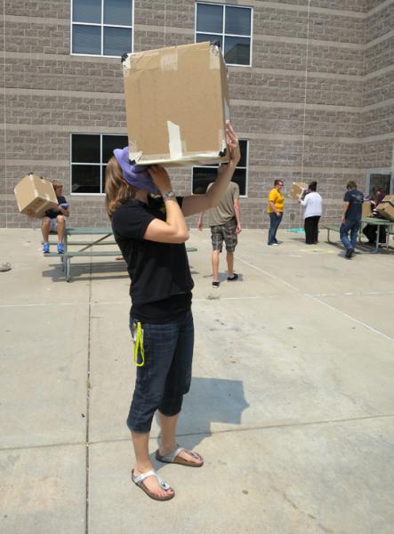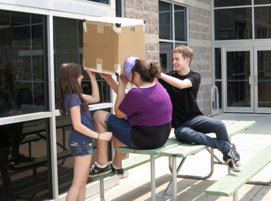 Led by instructor Samantha Johnston, students at Mountain Vista High School in Highlands Ranch, Colorado spend a day outside viewing the world from inside their handmade box camera obscuras. Check out the box so big, it’s supported by two people.