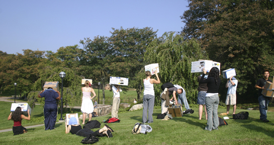 photo: R. Modrak. Group viewing with portable camera obscuras.