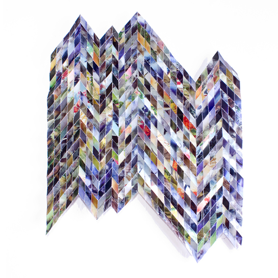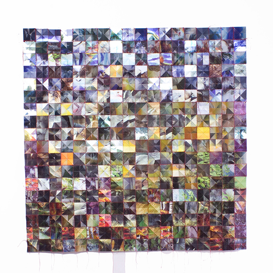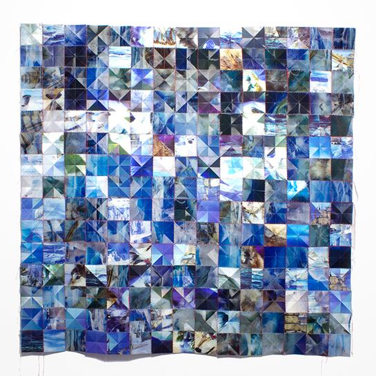 André Azevedo.Lentiformes. Stitching on scrapbook lenticular plates, 100 cm. x 77 cm.André Azevedo.Lentiformes. Stitching on scrapbook lenticular plates 116 cm x 116 cm.André Azevedo.Lentiformes. Stitching on lenticular plates cuttings 50 cm x 50 cm.André Azevedo.4 squares. Acrylic on canvas and sewing, 110 cm x 115 cm.
