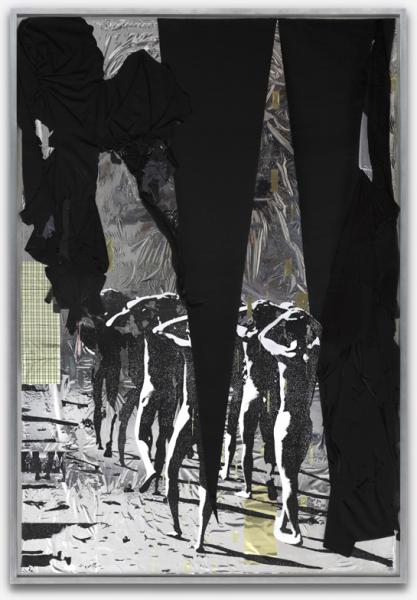 cloth, silver foil, glue, thumbtacks mounted on wood panel, 245 x 170 cm. Image courtesy of The