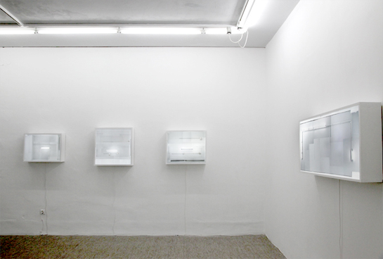Maria Raponi, Installation view, re-site at Künstlerhaus Dortmund, 6 lightboxes of the ceiling of their gallery spaces presented in gallery 2, 2010.