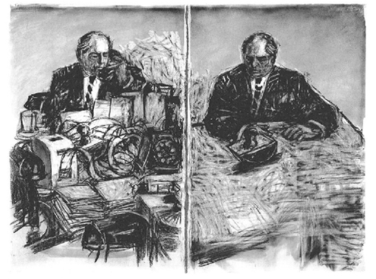 William Kentridge, Drawing for the film Stereoscope, 1999. Charcoal and pastel on paper, 47¼ x 63in. © William Kentridge. Courtesy of Marian Goodman Gallery.
