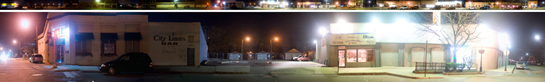 Charlie Michaels, Detroit / Grosse Pointe Border (with Detail), 2009, digital panoramic photograph, 5″ x 25′