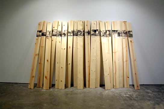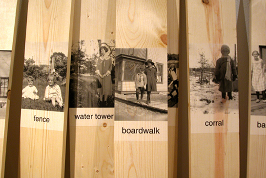 location where the house had been. I am interested in the fact that the photographs functioned differently for me from their original purpose of documenting family life. The materials I have used in this series are both personal and symbolic; all relate to the house and mill. Like objects in photographs, these materials provide clues for the viewer to decipher and arrive at meaning.